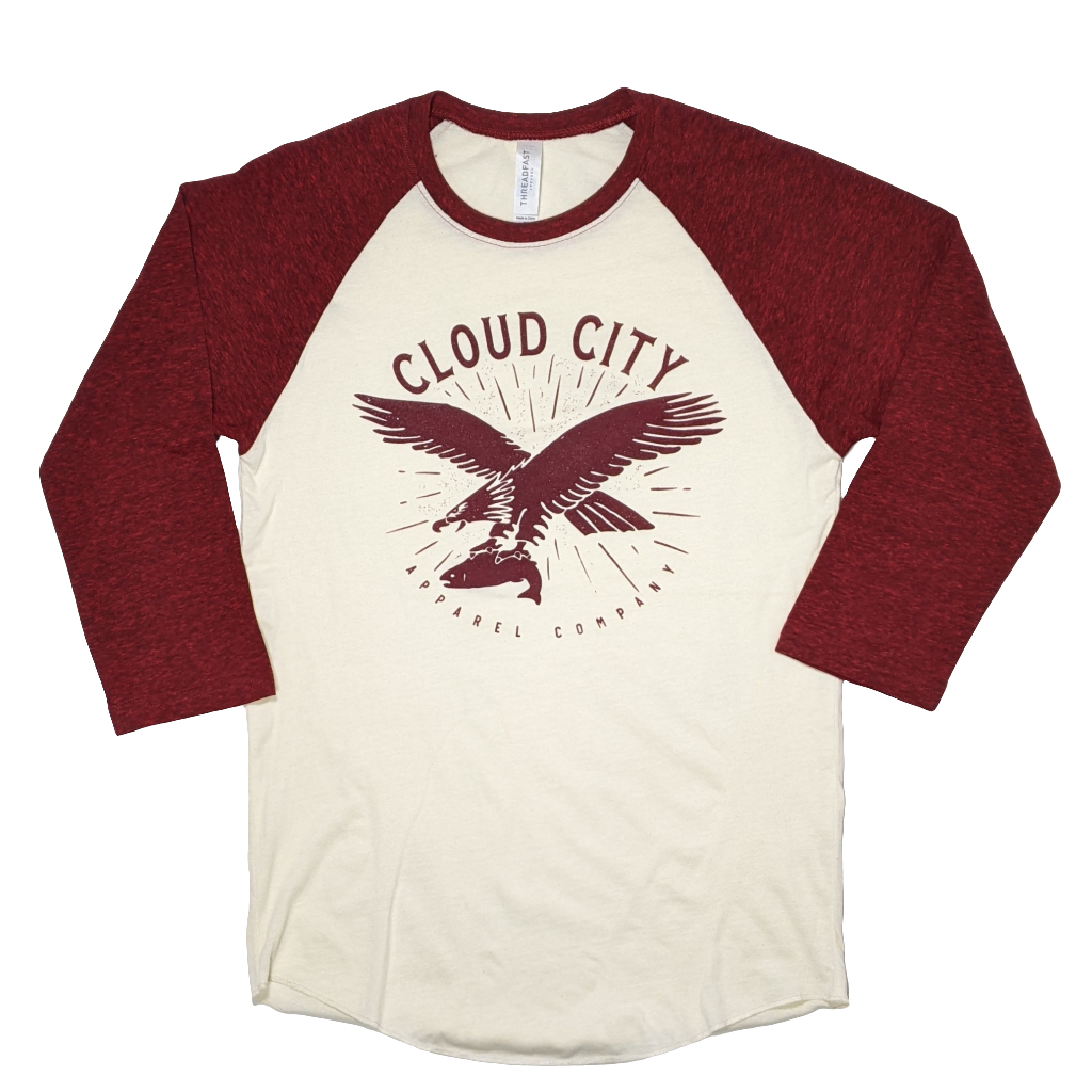 This baseball style tee is made with a tri-blend of 50% recycled polyester, 38% cotton, and 12% rayon. It features a 3/4 sleeve length, curved hem, and a standard unisex fit.