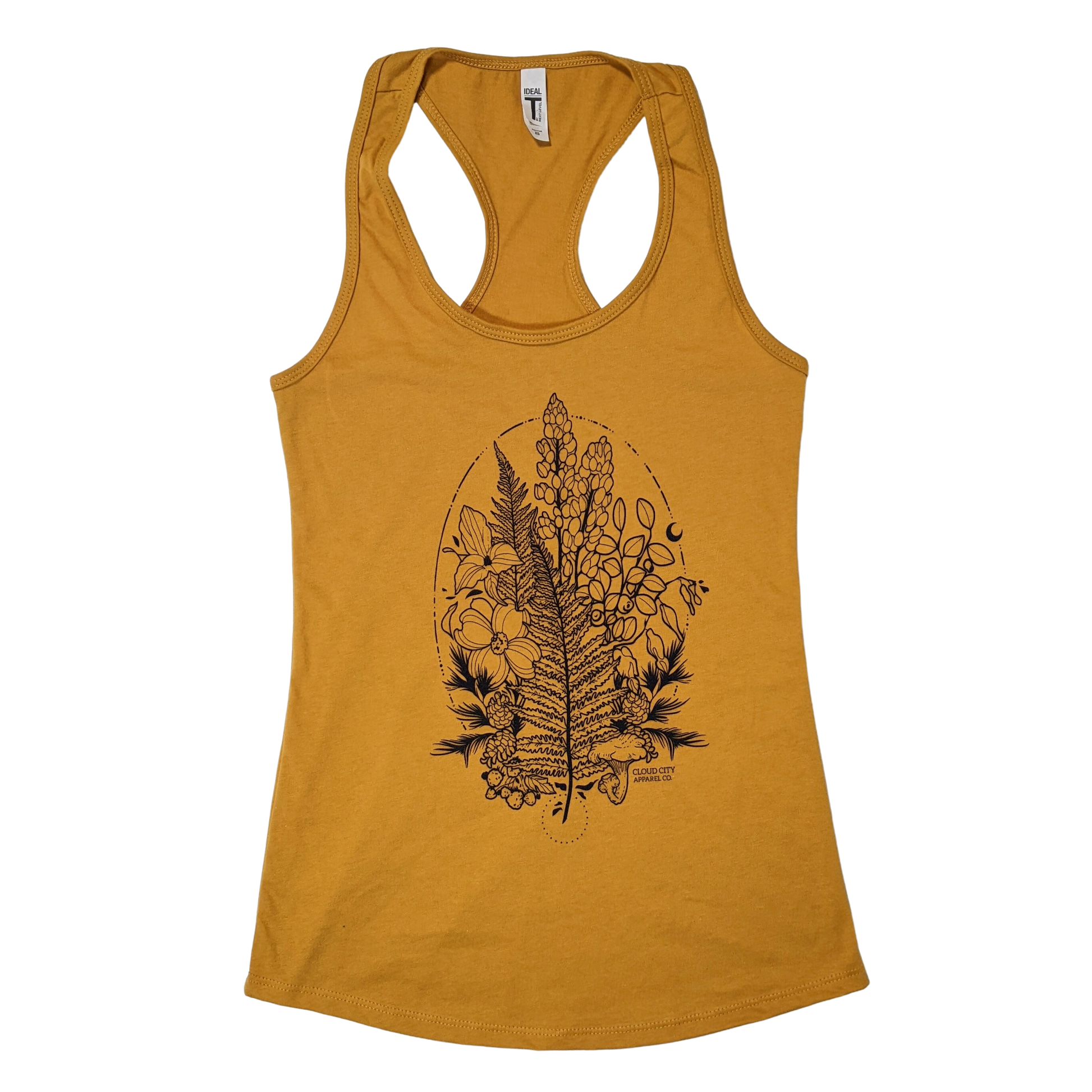 West Coast forest bouquet of lupins, sword ferns, salal, bleeding hearts, trillium, dogwood, salmonberries, cedar, and chanterelle.